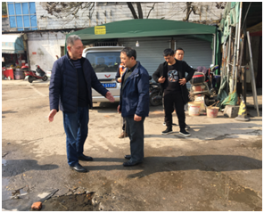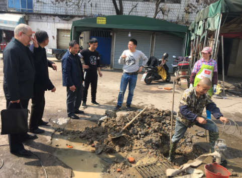 检查中发现赣桥南路与青山南路口道路长年积水,经我处协调市政公司组织专业队伍对积水原因进行排查,发现李家庄菜场旁洗车场我校地下自来水管因年久腐蚀,导致水管破裂。市政公司当即对冒水点进行了开挖、堵漏作业,确保了环境、路面的干净整洁。随后检查组对青山园校区周边及李家庄菜场进行了全面检查,对检查中发现的问题,进行了现场协调整改。