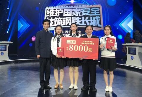 4月3日下午,由江西省国家安全厅、江西省教育厅共同主办的江西省高校国家安全知识竞赛活动在江西省电视台举行。我校法学院叶斯敏、郭维、蔡越三名同学组成代表队参加比赛,并荣获二等奖(第二名)的好成绩。校长卢福财作为特邀嘉宾出席活动,并观看了全场比赛。