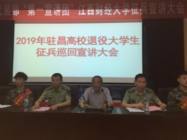 5月20日,2019年驻昌高校退役大学生征兵巡回宣讲活动分别在我校蛟桥园和麦庐园举行。副校长阙善栋出席活动,南昌市新建区人武部部长李细平、副部长江人生、大学生退役优秀代表参加了本次活动。各学院党委副书记、分团委书记、700余名学生代表到场参加。