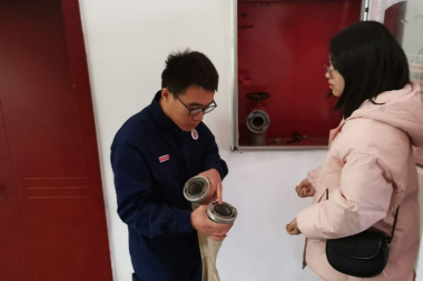 随后,消防中队通讯员通过实际操作向大家介绍消防服、吸水管、液压扩张剪切钳等消防工具的使用方法与作用,并讲解了消防栓、灭火器等日常消防工具的使用技巧。