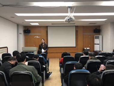 会议步入中程,林峰对于新生的心理健康管理和疏导进行了指导,并向班主任介绍一些与学生进行沟通的方法,以便在场的班主任更有侧重性和针对性地去了解学生、关注学生、帮助学生。在此基础上,唐海燕对全校的心理健康问题进行了大致的总结,她认为该问题不容忽视并且将对学生学习生活发展的方方面面产生影响,希望班主任能够多加重视,对于心理健康方面存在问题的同学予以正确的指引和疏导。