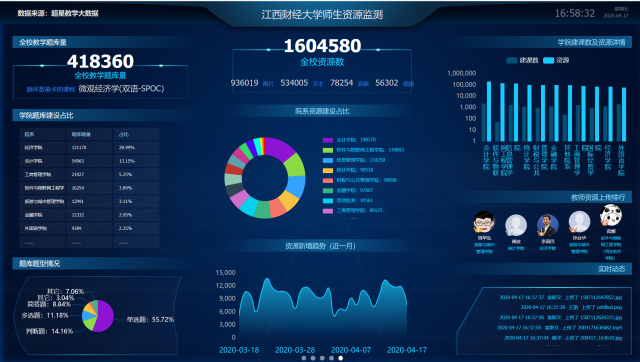 为了保障在新型冠状病毒肺炎防控期间学校线上教学正常运行,根据《江西财经大学192学期本科课程线上教学实施方案》(教务通知字〔2020〕6号) 要求,计算机实践教学中心周密谋划,制定实施方案,先后完成了与新教务系统全部课程的对接、本学期的任课老师网络教学服务平台及手机客户端学习通使用的录播视频培训和网络教学综合服务平台线上教学测试,并制定《网络教学综合服务平台管理应急预案》。为确保教师正常授课和学生正常上课,平台技术人员保持QQ、微信和电话24小时在线,全力做好技术支持,保障课程内容的建设和每周的教学活动正常进行。截止到4月12日,我校网络教学综合服务平台正在运行的课程共计2984门;资源数623515个;在线课程学生上线人数累计20267人,累计登录人次4193640次;教师上线人数累计1534人,累计登录人次165838次;平台访问量累计达到7806646次。