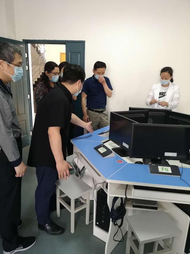 语音室验室承担了全校外语视听说教学任务,是学院重点安全排查区域。在检查过程中,要求所有设备在确保正常运行的情况下,严格按照学校的要求,将疫情防控各项工作、各种举措融入到日常管理中,做好防疫知识宣传画的张贴提示、“安全社交距离”设计、设备每日全面消杀等,同时也要考虑到语音室空间小、容量有限等因素,做好线上教学安排预案;对正常装修的机辅笔译实验室检查中,要求在保质量的同时,安全生产要放在第一位,特别是用电方面的安全,同时楼道的垃圾要及时处理,确保整洁,消除隐患。