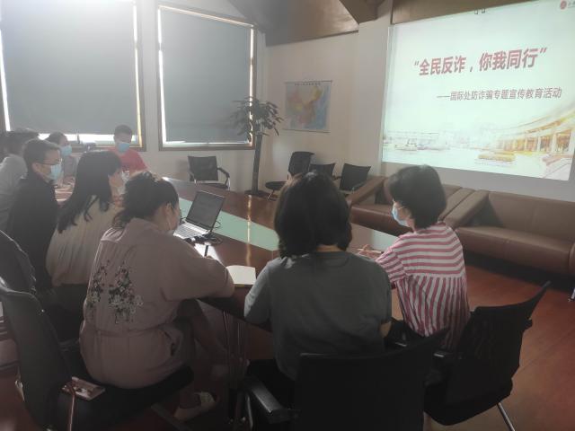 为落实有效推进我校反诈骗工作的要求,进一步提升我处员工对电信网络诈骗违法犯罪的防范意识和防范能力,最大限度挤压电信网络诈骗违法犯罪的生存空间。6月2日上午,国际合作与交流处组织全体员工开展防诈骗安全教育活动。