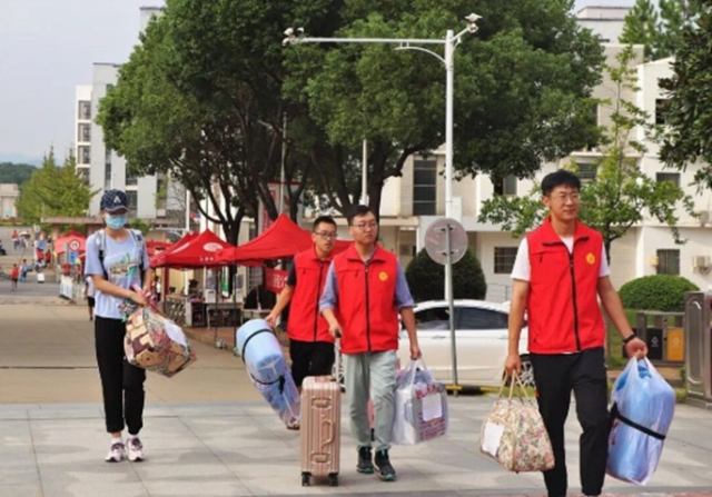 团委招募的志愿者主要分为校外志愿者、校内志愿者。 校外志愿者的主要工作是引导新生完成入校流程并维持学校外的秩序,避免人群拥堵、家长入校等情况发生;校内志愿者的主要工作是帮助新生完成开学报道流程、搬运行李至寝室及维持校园内的秩序,校园内外志愿者和合理分工合作,确保了学校内外秩序的稳定。此外,我校在南昌站、南昌西站、昌北国际机场一同安排了迎新大巴及志愿者,以帮助新生及家长顺利到校,确保外地新生安全抵达学校。