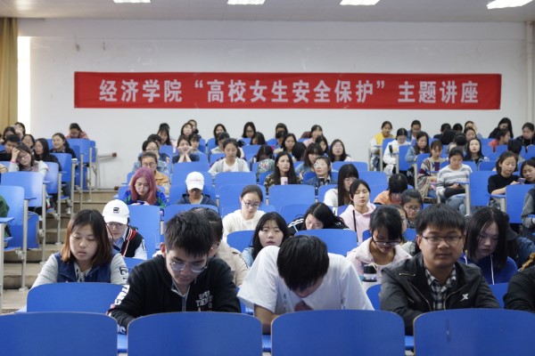 4月15日,经济学院女生部和纪保部于麦庐大活101举行“女生安全”知识讲座,特邀保卫科科长徐亮为学院大一女生演讲,以提高女生自我保护意识。