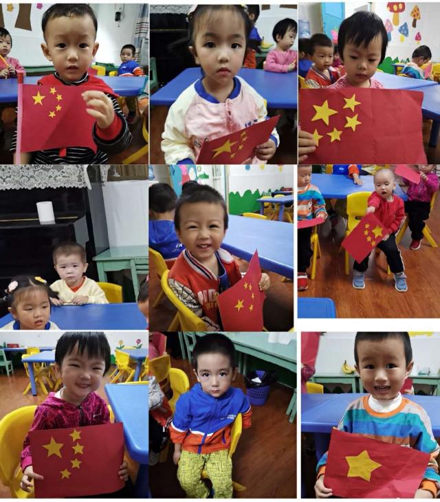 9月22日上午,“五星红旗迎风飘扬,胜利的歌声多么响亮,歌唱我们亲爱的祖国......”活动在雄壮的国歌中拉开了序幕,孩子们用自己稚嫩的歌声唱响了送给祖国妈妈的第一支歌。中、大班孩子与老师一起观看往年的阅兵仪式,感受祖国的繁荣昌盛。接下来孩子们有的念着刚学的“中秋”童谣,有的唱着关于中秋节的唐诗宋词,在这样愉快的氛围中,都亲手制作了灯笼和月饼的手工作品。托、小班在老师的帮助下,亲手制作五星红旗,宝贝们小心翼翼的贴上五颗小星星,因为,每一面五星红旗,都承载着宝贝们的爱国心!以及提前一周布置的亲子画,家长们都积极配合,各班老师也在今天将交来的作品挂在幼儿园大厅里,宝贝们指着自己的画向小伙伴们骄傲的说"你看,那是我的画。"。这样一幅幅温馨、和谐、美好的画面,仿佛让我们看到了祖国的未来,祖国的希望。