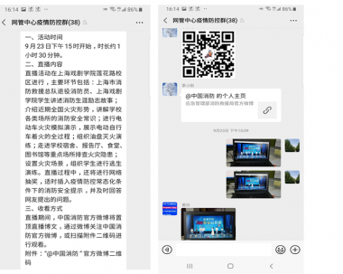 根据学校保卫处综治办通知精神,网络信息管理中心组织教职工于9月23日(星期三)15时开始,通过手机扫码在线学习,全体职工收看了应急管理部消防救援局在上海戏剧学院莲花路校区举办的网络直播“学校消防安全公开课”。
