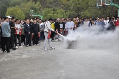 活动中,同学们表现出了高度的积极性。消防演练一开始由保卫科指导员向同学们介绍各类消防器材的使用方式,随后指导员就干粉灭火器的正确使用方式进行现场讲解、示范,并着重强调使用灭火器时应当保持冷静,牢记“一晃、二拉、三压、四喷”的动作要领。最后,在指导员的指导下,部分学生代表亲身体验现场灭火的过程,面对熊熊燃烧的火堆,学生们表现的十分沉着,熟练地按照灭火的步骤和方法,将浓烟大火成功地迅速扑灭。