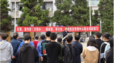 10月29日下午,纪委、宣传部、统战部、审计处、网络信息中心联合举办消防演习活动。校党委常委、统战部部长彭清宁、宣传部文明办主任喻春龙、审计处处长汪宗亮、网络信息管理中心党总支书记季小刚、纪委综合办公室主任秦建斌等出席本次活动。