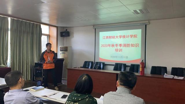 11月11日,统计学院于蛟桥园北区综合楼313室举办消防安全讲座。赣安消防公益培训中心赖长旺教官担任本次讲座的主讲人,统计学院全体教职工参加此次讲座。