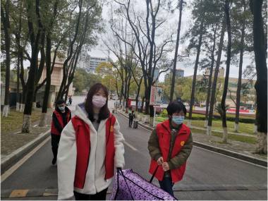春风峭寒,细雨不止,志愿者身着红衣,有序地站立在各个校门口,微笑是他们的问候语,服务同学是他们的行动。因为他们的服务,江财学子们在一路颠簸后返回母校,内心激动澎湃,门口同胞们亲切的问候,热情的帮助,让每一位返校学子内心充满了温暖与感动!