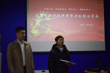 为鼓励工商学子积极应征入伍、解答意愿参军者的疑惑、激发学子们将青春奉献强军事业的热情,工商管理学院学生分会于4月7日在工商大楼举办“兵哥哥进校园”分享会活动。工商管理学院学生辅导员曹继明、学生分会主席(执行主席)卢涌涛出席活动。18至20级部分学生共同参与此次活动。