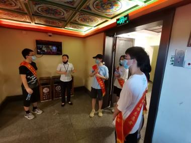 活动当天,志愿者们分成两组,在景区各个服务点为游客提供服务,一组志愿者在景区出入口处协助工作人员检票;另一组则在滕王阁内引导游客有序上下楼,为游客提供导航服务。