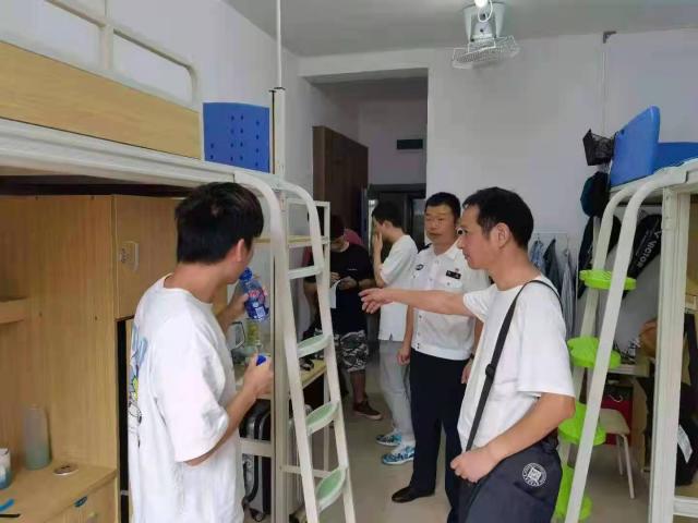 为确保学生宿舍消防安全,进一步加强学生自我安全意识,8月19日上午,会计学院对暑期留校本科和研究生学生宿舍楼栋开展消防与安全隐患排查,严防重大事故发生。校保卫处相关负责人,学院党委副书记肖安生,专职辅导员邓雪伶、蒋博斌参与此次查寝工作。