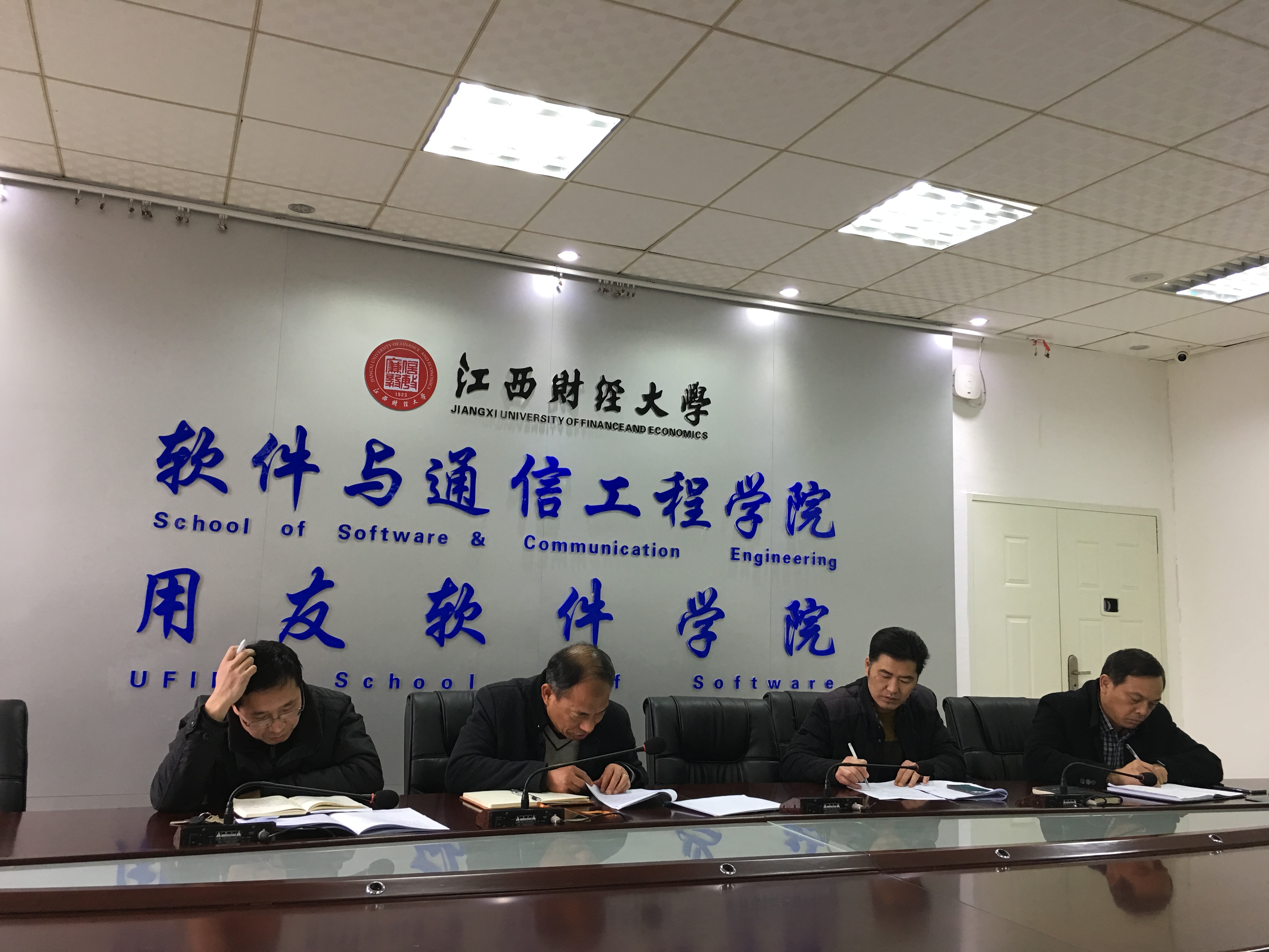 12月14日上午9:30,软件学院在学院大会议室召开全体行政人员会议,传达上级有关会议精神,布置省综治考评迎检迎评准备工作,党委书记姜红仁、党委副书记彭敏、副院长黄茂军、副院长易润水以及全体行政人员参加了会议。