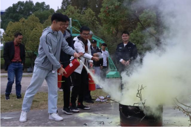 消防安全与我们的生活息息相关,校保卫处科长樊文浩指出,校园内发生火灾的原因大多是由于同学消防安全意识淡薄,在宿舍内违规使用电器(如充电宝,热得快,吹风机),更有将电动车电瓶取下放至宿舍内充电等违规操作,一旦发生爆燃,后果将不堪设想。与此同时,为了规范同学们正确使用灭火器,提高应急应变的能力,樊科长带领同学前往了南区篮球场,进行灭火实操演练。樊科长耐心细致地讲解了灭火器种类,并演示拔出灭火器安全栓的正确方法,在场的每一位同学都认真聆听,并积极参与到灭火演习中。