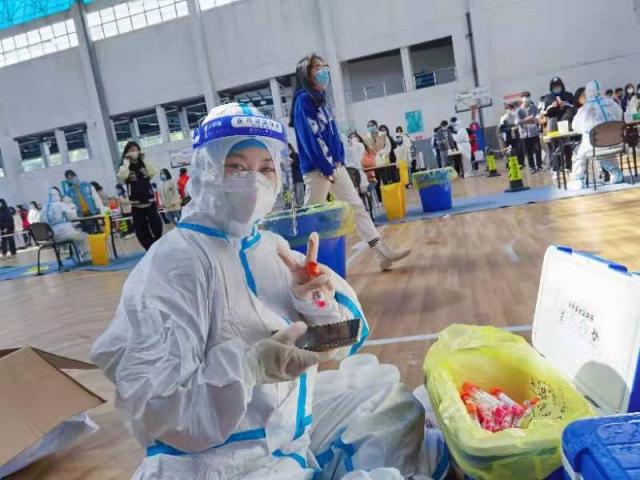 自疫情防控阻击战打响以来,幼儿园紧跟疫情形势开展细致的疫情接触情况筛查和全体幼儿、教职工健康状况报告工作,每日关注幼儿、教职工的核酸检测情况,按时上报学校和区教办,建构牢固的健康防护墙。3月23日,在学校新一轮全员核酸检测中,我园徐雅风老师响应学校党组织号召,作为志愿者积极参与此次疫情防控中。