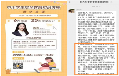 停课不停学,安全不放假。在严峻的疫情形势下,为加强学生安全教育,提高同学们的安全意识,4月23日下午,江西财经大学附属中学通过线上课程的方式,组织全体学生在家线上观看了由省家庭教育中心开展的中小学生安全知识教育公益讲座。