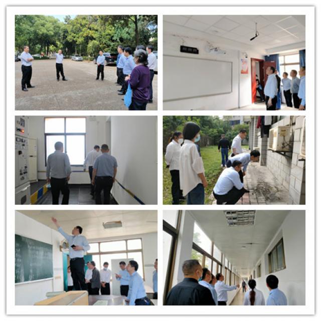 检查组一行先后来到EMBA楼、教学楼、培训楼、配电房、家属区、校区大门口等重点场所,实地督查了用电、防疫消杀、人员管理、消防设施、环境治理等方面内容,并对存在的问题隐患提出明确的整改要求。
