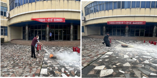 为进一步加强消防安全宣传教育,提高抵御突发火灾事故的能力和水平,扎实推进消防“一警六员”开展,6月24日下午,一场别开生面的“一警六员”消防基本技能培训在附中枫林校区图书馆门口举行,附中教师代表、物业、食堂工作人员均参加培训,并进行了现场考核。