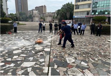考核项目包括:1、正确使用干粉灭火器迅速对燃烧的油盆进行灭火。2、快速交替使用消防水带连接室外消火栓并出水。整个考核过程中紧张有序,参训人员均顺利完成。