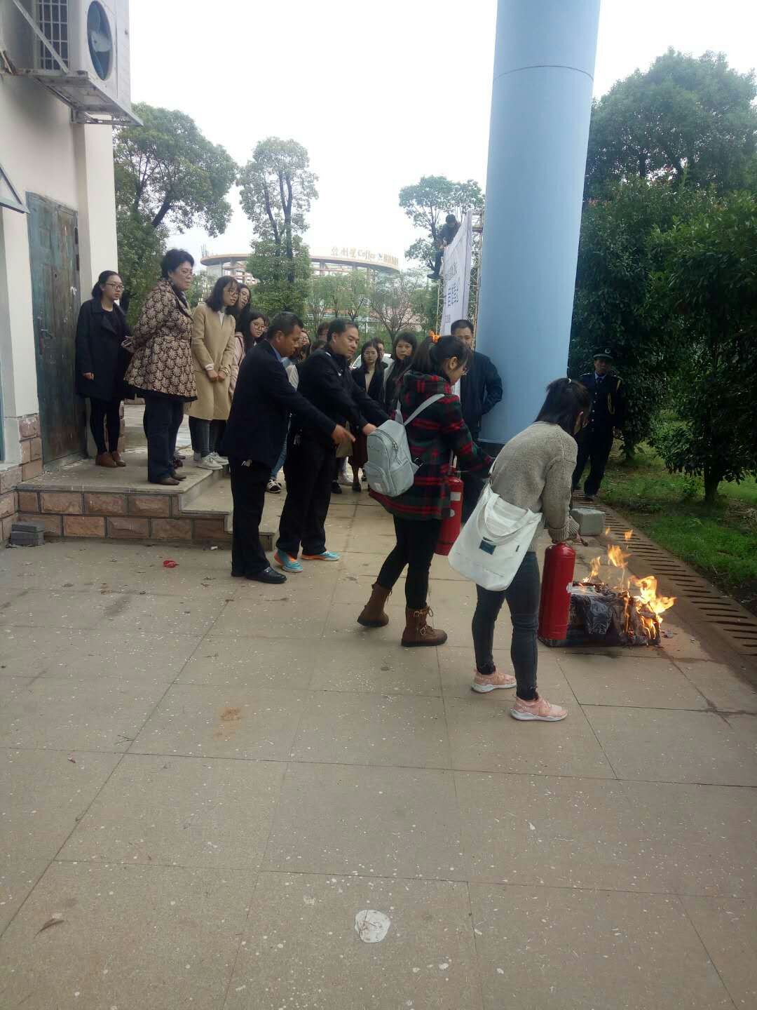 之后,刘峰同志与招生就业处全体人员带领学生助理们进行了室外灭火器使用演练,帮助大家更好掌握灭火器的正确使用方法。