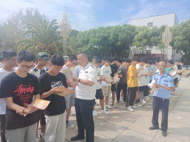 院党总支副书记刘前首先做反诈宣传动员,引导学生了解诈骗陷阱及校院诈骗相关情况,提醒同学们重视反诈知识教育。随后,下罗派出所李警官向在场新生宣传讲解了防范电信诈骗的常识,详细介绍了公安部推出的“国家反诈中心”APP四大防骗功能,提醒同学们安装APP并开启“预警防范”功能,及时规避和监控电信诈骗。最后,枫林保卫科科长张小保、学院师生和派出所民警一起向前来参加活动的同学们分发了宣传资料,方便同学们学习领会。