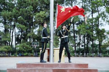 9月28日下午,学校在麦庐园南区田径场隆重举行升旗仪式,全体师生代表面向国旗肃立致礼,共唱国歌,注视着鲜艳的五星红旗冉冉升起。随后举行了升校旗、奏唱校歌仪式。