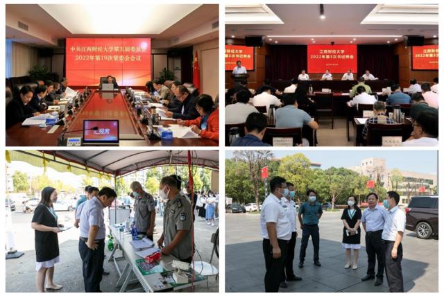 “要提高政治站位,树牢底线意识,坚决扛起重大政治责任,推动工作任务落实到位,确保校园和谐稳定,以优异成绩迎接党的二十大胜利召开。”校党委书记卢福财在主持召开今年第3次书记例会时强调。国庆节假期第一天,校党委书记卢福财、副校长陈始发在实地走访检查师生学习情况时,再次要求相关单位抓好校园安全工作,为党的二十大胜利召开营造良好氛围。“全校上下要围绕迎接、宣传、贯彻党的二十大这条主线,广泛宣传新时代10年的伟大成就、伟大变革,引导广大师生坚定历史自信、振奋进取精神,沿着习近平总书记指引的方向坚定前行。”10月8日上午,卢福财在主持召开今年第19次党委常委会会议上重申道。