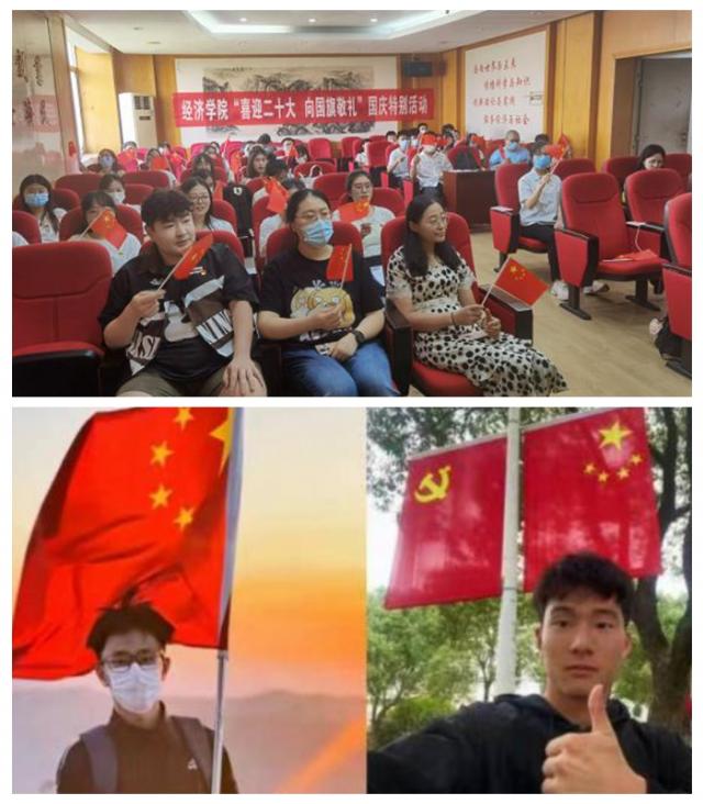 我校多个学院积极组织同学们以青春的名义向祖国告白。师生们以歌声献礼国庆,以赤忱致敬中国。“在无数蓝色的眼睛和褐色的眼睛之中,我有着一双宝石般的黑色眼睛。我骄傲,我是中国人!”研究生党员代表带来诗朗诵《祖国我爱您》《我骄傲我是中国人》,朗诵字字铿锵,掷地有声,激昂的韵律与文字融入在场每一位党员的血液中,仿佛拥有跨越时空的力量。我校各级团支部组织开展“向国旗敬礼——青春致敬祖国”红色文化教育主题团日,通过微团课、读书演讲、齐唱团歌、重温入团誓词、观看红色电影等多种形式,引导广大团员青年进一步从红色文化中汲取力量,厚植家国情怀,争做有理想、有本领、有担当的时代新人。与此同时,同学们用镜头定格与国旗同框的精彩瞬间,表达对伟大祖国的美好祝愿;用文字传递自身的拳拳报国心,抛洒青春拥抱祖国,献上对祖国母亲最真挚的祝福。