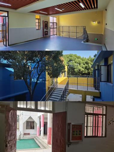 “全覆盖、零容忍、严管理、重实效”是江财基建人始终秉承的原则,施工过程中项目组成员统筹安排、有序推进,坚持以安全生产为底线,把安全工作贯穿项目的设计、施工过程、竣工验收各环节;进行幼儿园房屋结构安全鉴定,保证项目建设安全;工程围挡上官宣以展示文明校园建设中校园建设形象、接受师生监督;严抓文明施工、现场管理,积极响应使用单位需求,现场解决施工过程中的细节难点问题、克服暑期连续高温天气、疫情反复对施工带来的影响,最大程度的保证了施工期间的工作效率,推进了工程建设。