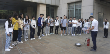最后,李教官还详细地讲解了如何使用灭火器,并现场演示了灭火器的正确使用方法,多位同学进行了灭火器的练习使用。