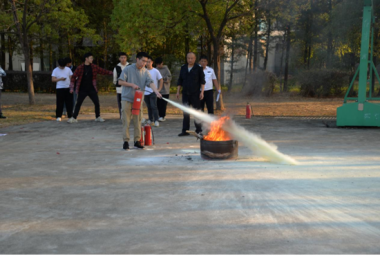 之后,樊科长开展了消防灭火器操作相关知识讲解和现场示范,重点讲解根据火灾不同情况采取应对的措施以及灭火器使用方法等。他强调在面对火灾时需保持沉着冷静头脑清醒,并总结出“小火就用灭火器,提拔握压就搞定”灭火器使用方法。在樊科长的指导下,大家亲身体验使用灭火器现场灭火。在实践操作过程中,同学们按照学习到的技术要点,正确使用灭火器,成功将火扑灭。