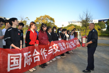 为增强2022级国际本科项目学生应对消防突发事件安全防范意识,掌握基本消防常识、培养自救逃生技能,保障学生生命安全,打造平安校园11月7日下午,国际合作与交流处在麦庐园南区篮球场开展新生消防灭火实操演练。麦庐园保卫处樊文浩科长到场指导演练,国际合作与交流处负责人、综治联络员、班主任、国际本科项目全体学生参加。