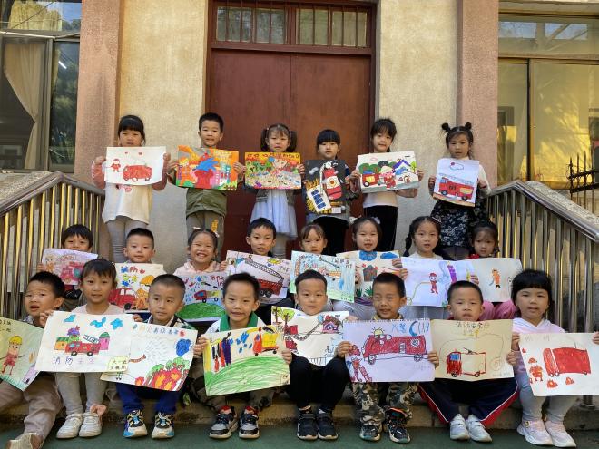 活动中,教师带着孩子们参观园内的消防器材和安全出口标志,让孩子们认识、了解消防常识。各班根据幼儿的年龄特点,用图片、故事、儿歌等多种形式对幼儿进行消防安全宣传教育。帮助幼儿了解火警电话、火灾发生的原因,加深幼儿对消防安全的警示,让幼儿充分认识到火灾的危害性。通过观看“防踩踏”安全专题宣传片,让幼儿了解发生安全事故逃生时,遇到突发状况,应该如何在拥挤的人群中保护自己。最后,在家长的积极配合下开展了园内消防安全宣传绘画展。