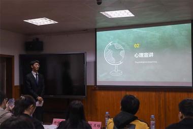 为了丰富心理学知识,锻炼心理素质,将积极的理念带入现实,让江财的学子对心理学有更深刻的认识,金融学院大学生心理健康促进协会于11月19号下午,在金融学院楼二楼西头多媒体教室开展了以“光耀我心,向阳而行”为主题的“寻找最美江财人”心理健康形象大使活动。出席本次活动的有辅导员段月维、团委第一副书记谢晓蕾、学生会主席团成员冯庆宇、学生会主席团成员翟华墉、团委学生副书记骆宇等。