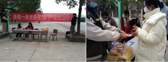 本次活动秉持安全文明出行理念,设置了趣味问答和慧眼发现两大板块,旨在考查学生对有关安全知识的了解程度和提高对现实生活中电动车不当使用的发现意识,同学们都积极踊跃地参与。在慧眼发现板块,工作人员向同学们展示有违规骑行电动车的图片,让同学们发现图片中电动车不正当使用的问题,进一步加深同学们的安全意识。在趣味问答板块,工作人员通过趣味知识问答的形式,对学生们进行对有关电动车安全知识的考查,让他们在轻松愉快的活动氛围中,清晰了解身边电动车安全隐患。此外,我们的工作人员还分发电动车安全知识传单,普及电动车安全常识和学校电动车相关政策,同学们对电动车安全有了更深刻的认识。对于积极参与本次活动的同学,我们给予了零食奖励,以此激励其往后生活中能够规避电动车安全事故,并对周围人进行宣传教育,降低电动车使用安全隐患。