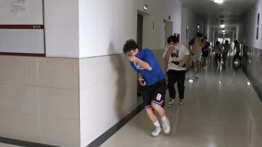 演练过程中,当火灾警报响起时,我院师生及时响应,顺利、有序地从教室、办公室等场所进行撤离,前往集合点集合,并听从现场总指挥的调度,井然有序地按照区域和单位进行排队等候。在演练过程中,各小组成员恪尽职守,学生撤离时均按要求捂住口鼻,匍匐前进。