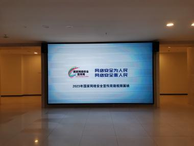 在国家网络安全宣传周期间,档案管理中心一楼LED大屏循环播放相关的宣传材料,积极营造网络安全文化氛围,强化网络安全意识。