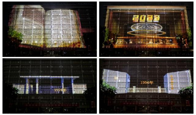 此场MR光影视觉秀是以“星月交辉”为主题,从“星星点灯”“星罗棋布”“繁星闪烁”“群星汇聚”四个篇章分别展现出江财百年建校历史、时光记忆、办学成果、校友祝福和学子风采。整场秀灿若繁星,皓月千里。展示中,从1923年到2023年,三维矩阵演绎江财在时空长河中的历史风貌,星光光束幻化出时空隧道,活字印刷最终汇聚形成“信敏廉毅”校训,“敬业乐群、臻于至善”精神。江财名师,学生课堂、图书馆复习、宿舍学习、校园晨读等场景活灵活现。桃李芬芳,满屏祝福、财大校徽、漫天烟花……一封折好的信纸缓缓打开,手写体的文字伴随童声校歌逐字显现,闪耀全场。