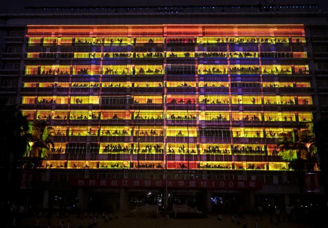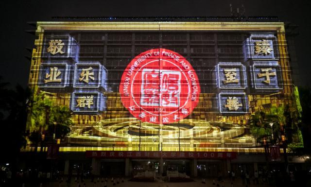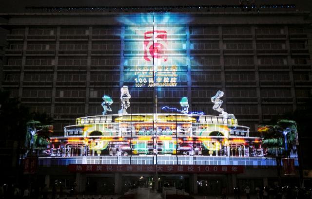 百年江财,星月交辉。10月26日晚,江西财经大学百年校庆MR光影视觉秀在蛟桥园校区崛起广场隆重开演。副校长袁雄致辞,副校长李春根主持,江财深圳校友会副会长、79级基信专业张晓奕校友,深圳市花生数字多媒体有限公司董事长、江西财经大学艺术学院2008级数码设计专业张圣科校友参与此次开演仪式。