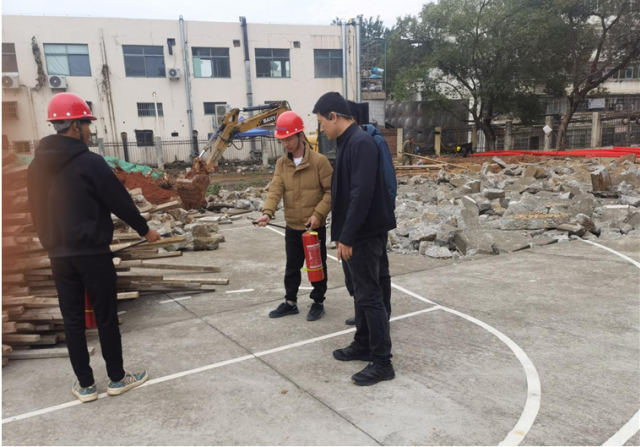 为了进一步增强施工管理中消防安全和火灾自救意识,提高我校在建施工项目组在面对突发事件时的应急反应能力,11月13日校园建设处在蛟桥园附属中学内组织开展我校当前在建项目消防安全知识演习。