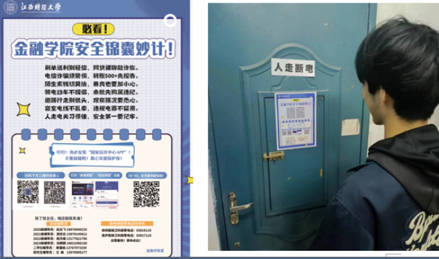 为进一步做好“反诈骗,防诈骗”安全教育工作,引导同学们增强安全防范意识和提升安全防护能力,金融学院近日精心设计了寝室反诈宣传贴——《金融学院安全锦囊妙计》,要求各寝室张贴在门后,旨在守护金融学子的钱袋子,使每一位同学在学业拼搏的同时,更加懂得如何保护自己的财产安全。
