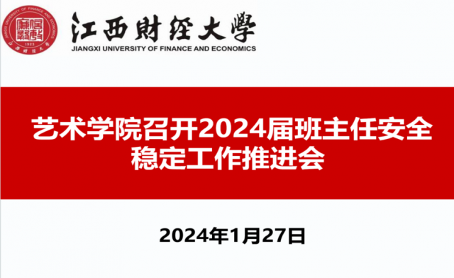 1月27日,艺术学院召开2024届毕业班班主任安全稳定工作推进会。学院党委书记胡文明、党委副书记肖勇以及各毕业班班主任参加本次会议。