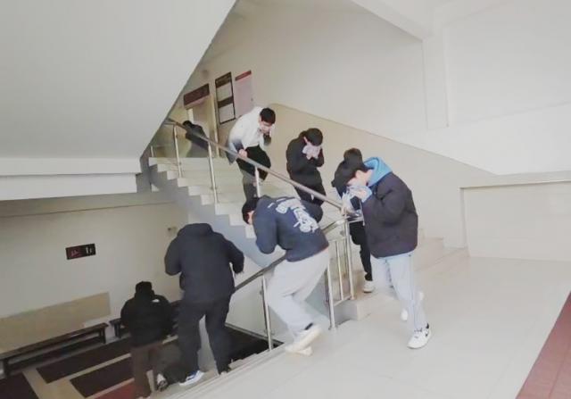 演练过程中,当火灾警报响起时,我院师生及时响应,顺利、有序地从宿舍内进行撤离,前往集合点集合,并听从现场总指挥的调度,井然有序地按照区域和单位进行排队等候。在演练过程中,各小组成员恪尽职守,学生撤离时均按要求捂住口鼻,匍匐前进。