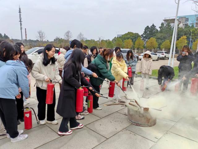 喻冬冬向同学们科普消防安全知识与技能,并对灭火器的使用进行演示。在老师及工作人员们的引导下,同学们纷纷上前拿起灭火器进行灭火实操,加深对所学知识的印象。