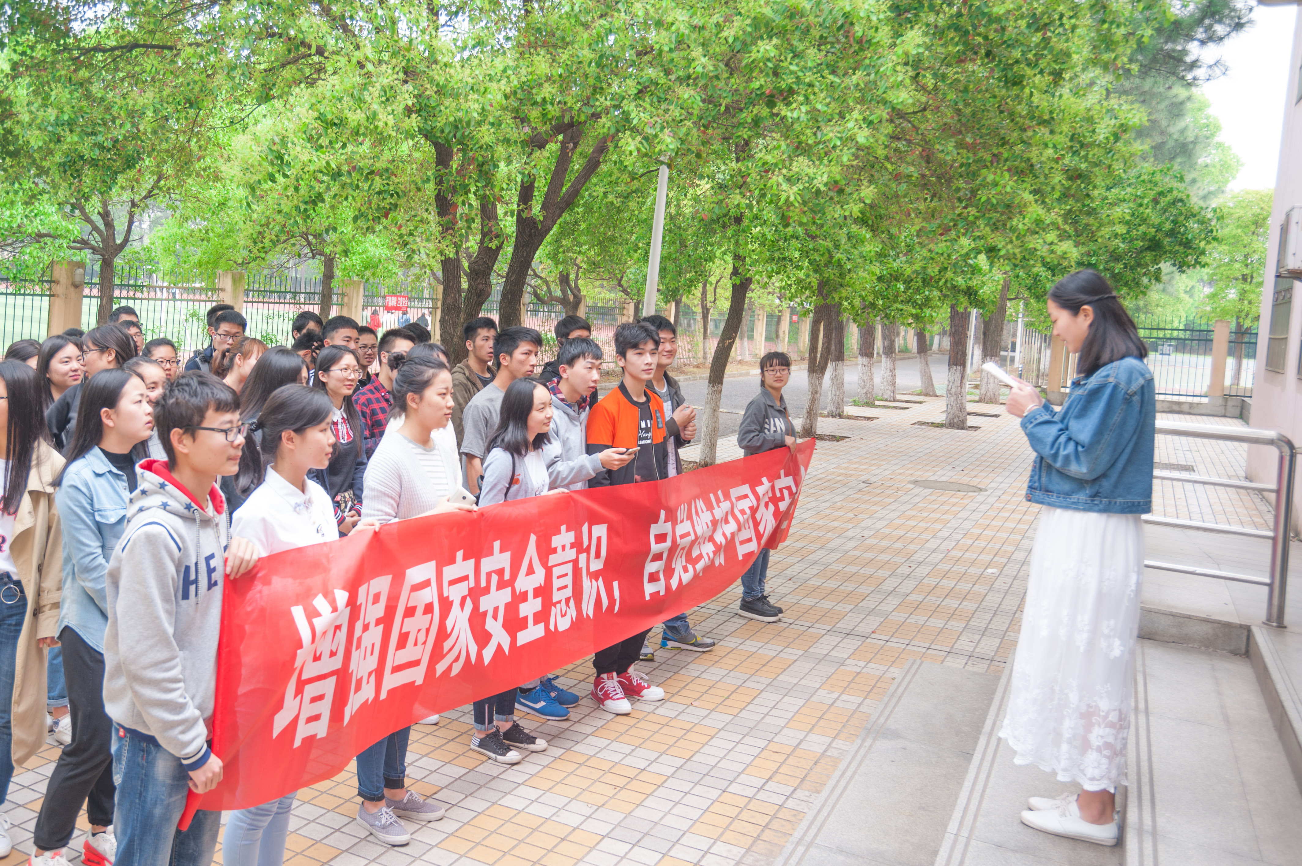 郭老师在致辞中说,国家安全并不是一句虚话。此次活动的第一要义,是促使学生树立牢固的安全意识,从自身小事做起,注重自身安全、国家安全。学生代表郑林浩认为大学生应当关注国家安全与社会稳定,尽己之力,承己之德,维护国家的和谐安定。