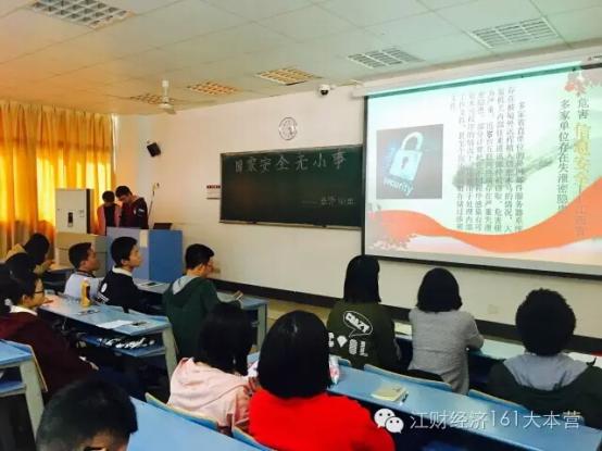 此外,我院为了让每位学生都能参与到“全民国家安全教育日”活动中来,特此每班举办了关于国家安全教育的主题班会。各班采用不同的方式,向各位同学传达并普及了国家安全对于我们大学生的重要性。并且还组织了学生会干部下寝宣传的方式,将宣传单发到每位同学的手中,让同学们更加切身的了解关于国家安全的重要性。