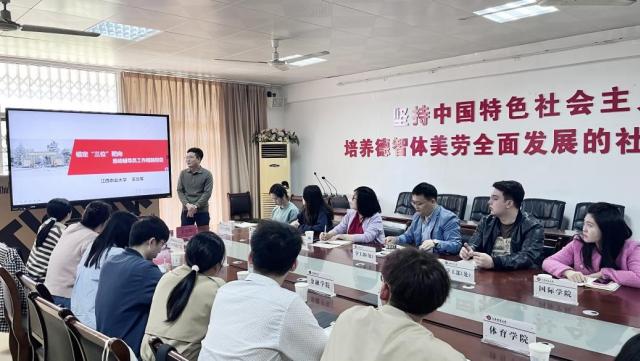 3月29日上午,学工处、学生资助管理中心召开发展型资助育人工作研讨会,各学院学生资助工作辅导员及部分学生代表参加研讨,江西农业大学团委挂职副书记、工学院团委书记吴焱军受邀到会进行经验分享,会议由学工处副处长夏贤明主持。
